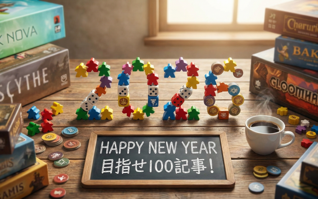 みなさん、あけましておめでとうございます! HIKAFREです。 ついに2026年がやってきましたね。 みなさま、年末年始は充実したボードゲームライフを過ごせましたでしょうか? 私はというと、年末に友人たちとガッツリ重ゲーを回す予定…だったのですが、なんと直前で予定が流れてしまい、まさかの「ぼっち年末年始」を過ごしておりました(泣…